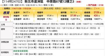 台北法拍專家 新北市蘆洲區中原路87號12樓之3