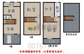 - 格局:3房(室) 2廳 1衛