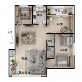 - 格局:3房(室) 2廳 2衛