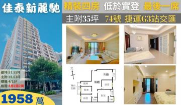 北屯十期首席~佳泰新麗馳~室內35坪四房精裝開價實登內
