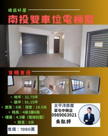 關鍵字: 南投全新雙車位電梯別墅